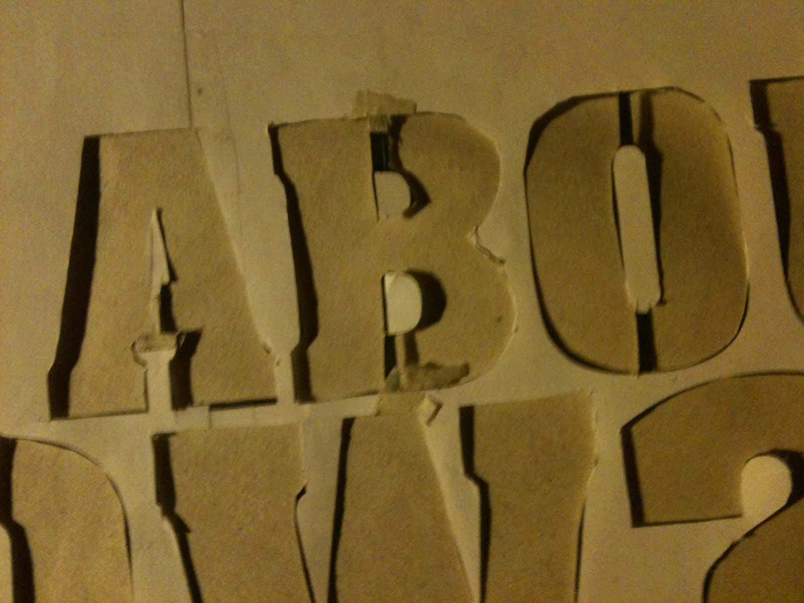 Note the way the triangle of the “A” or the middle of the “B” or “O” are connected to the outside of the letter. Also not the copious tape – proof that you can mess up and cut too much and fix it with tape and cutting again.
