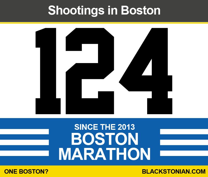 We have been working closely with Blackstonian.com to keep track of all shootings (fatal and non-fatal) that have occured in Boston since the 2013 Boston Marathon. With all the media attention and the outpouring of support for victims of the Boston Marathon Bombings, we wanted to highlight the daily tragedies that are consistently ignored and whose victims receive nothing compared to the millions and millions raised in a matter of weeks for the One Fund.