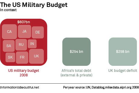 Found an interesting post comapring some stats about military spending on the Guardian Data Blog. Pretty mind boggling – if not surprising.
